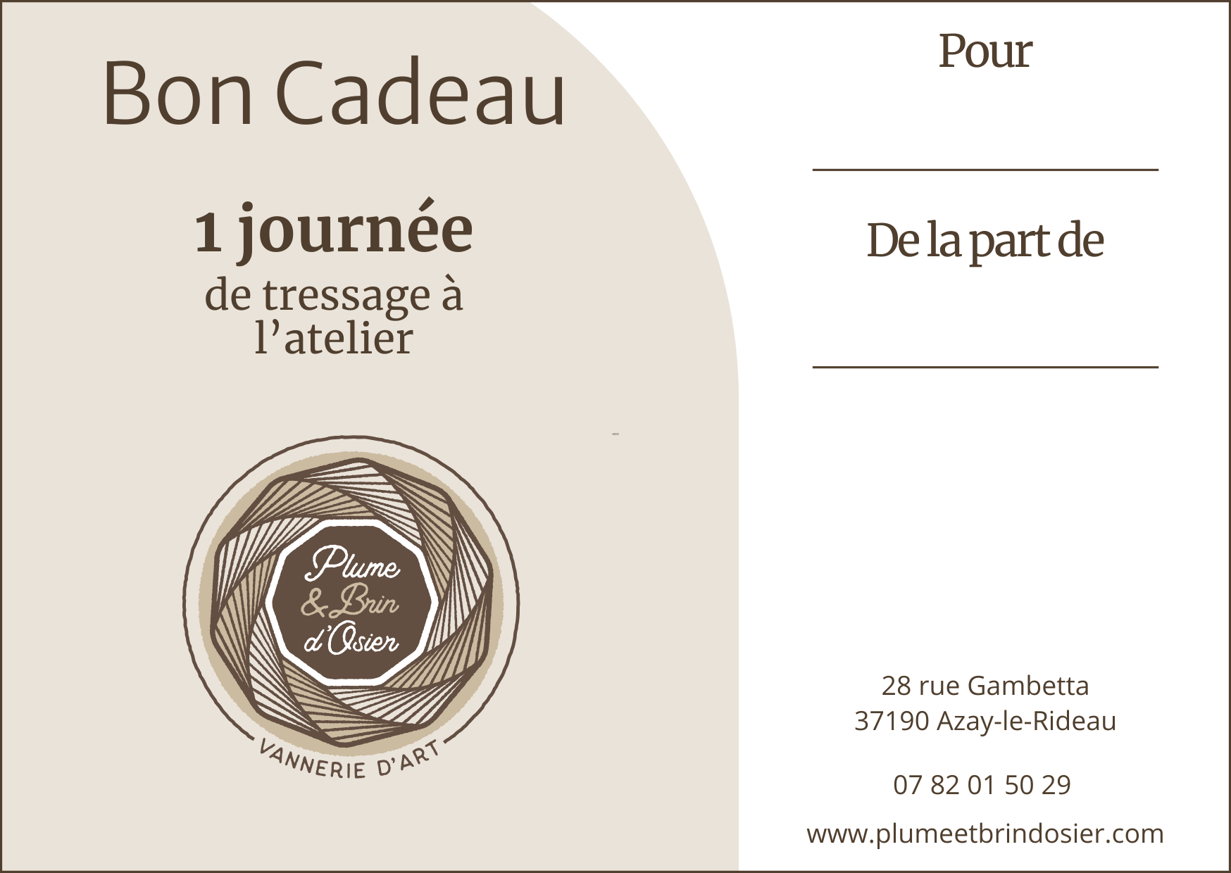 Bon Cadeau pour une journée de tressage a l’atelier . Vous pouvez réaliser un nichoir , une mangeoire à graines  ou un petit panier.
